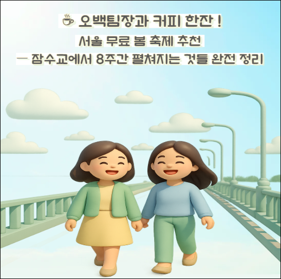 #잠수교축제 #뚜벅뚜벅축제 #차없는잠수교 #반포한강공원 #서울봄축제 #한강축제2026 #서울무료축제 #달빛무지개분수 #주말나들이 #머니오백팀장과커피한잔