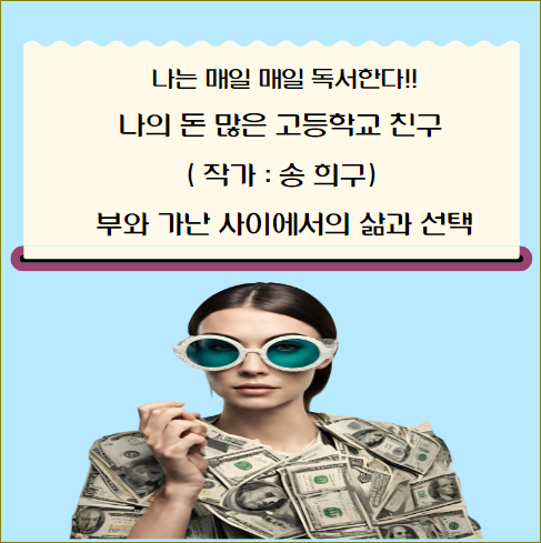 광수와 영철이라는 친구들의 이야기입니다. 영철이의 모습이 꼭 저의 모습을 보여주는 것 같아서 착착한 마음으로 책을 읽었습니다. 나도 영철이처럼 광수 같은 돈 많은 부자 친구가 있더라면 얼마나 좋을까? 하는 생각을 했습니다. 광수가 부자여서가 아닙니다. 돈 많은 부자가 된 광수의 비결을 직접 듣고 싶은 마음 때문이었습니다. 나도 영철이처럼 돈 많은 부자 친구를 만나 나의 속 깊은 고민을 털어놓고 내가 가진 경제적인 문제들에 대해 터놓고 상담을 받고 싶었습니다.