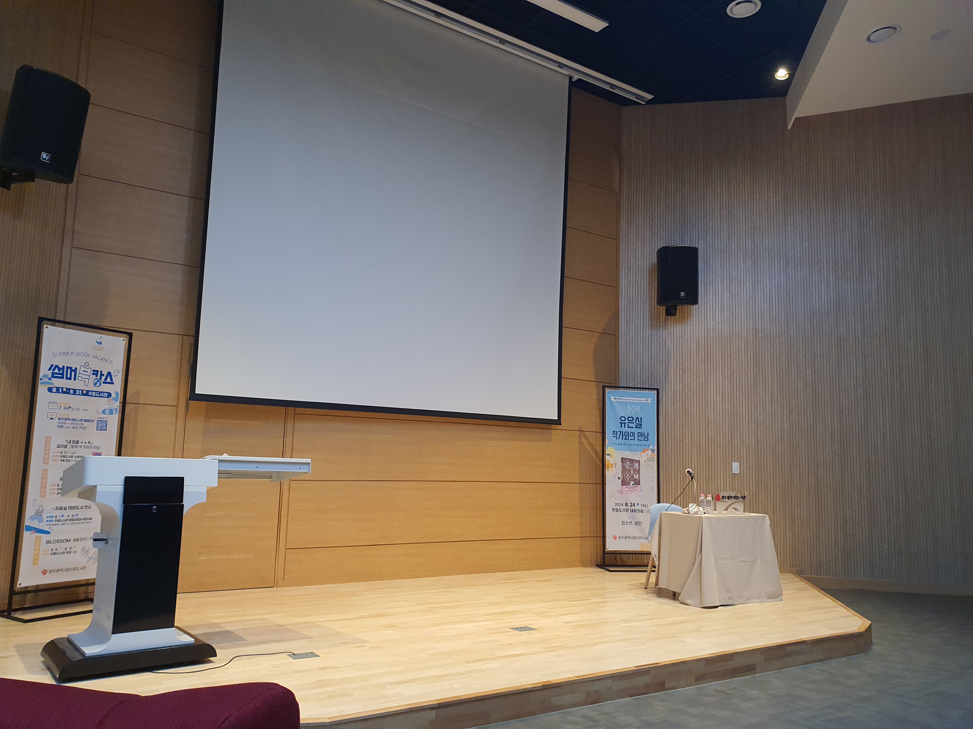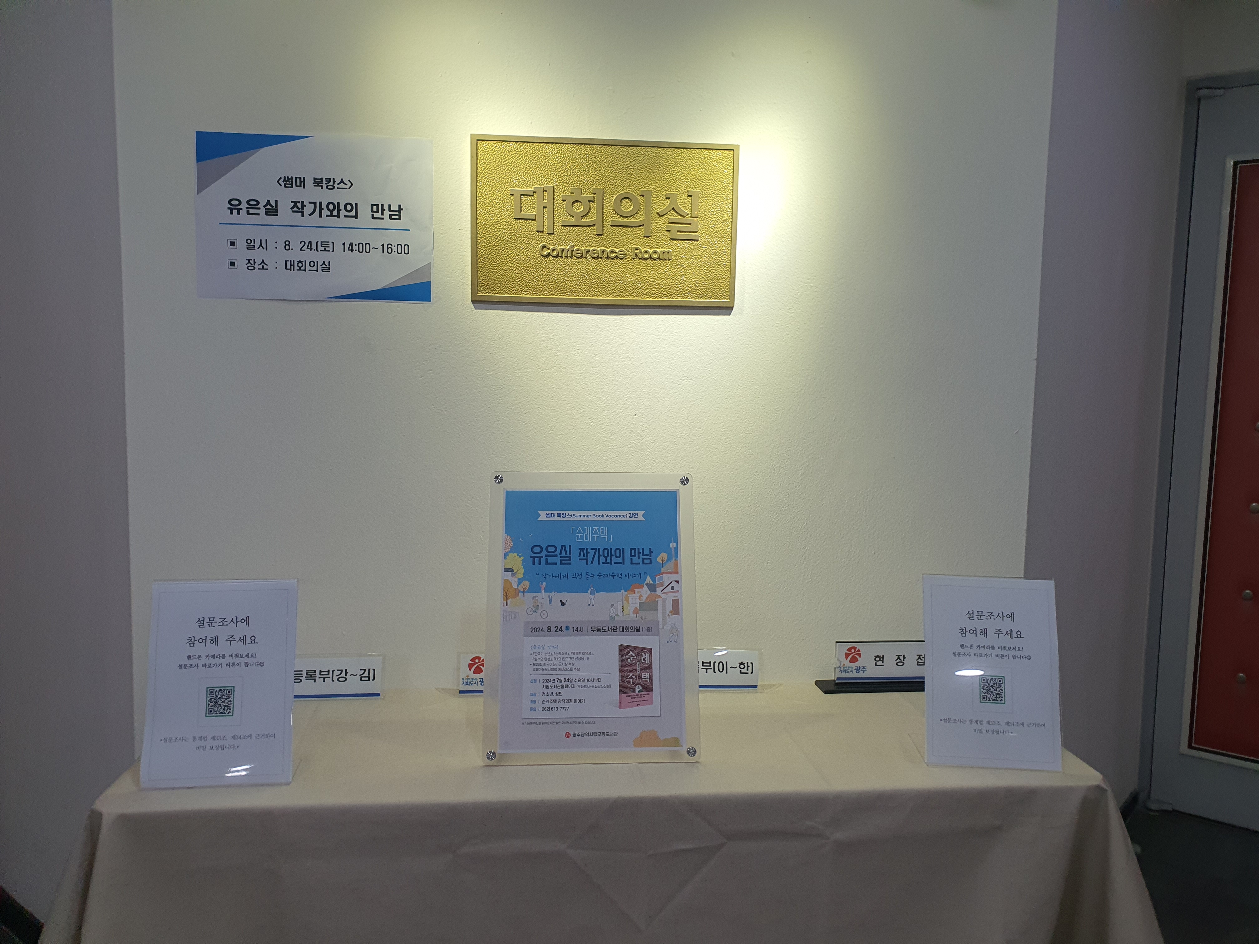유은실 작가님에 대해 잘 알지 못했지만, 이번 기회를 통해 작가와의 만남이 어떻게 진행되는지 알아보고 싶었다. 그래서 도서관에서 『순례주택』을 대출받으려고 했으나, 그 인기 덕분에 4권 모두 대출 상태였다. 오랜 시간 기다렸지만 결국 오늘, 8월 24일 ‘작가와의 만남’이 있는 날까지 책을 읽지 못했다. 그래서 살짝 긴장된 마음으로 북토크에 참석했다.