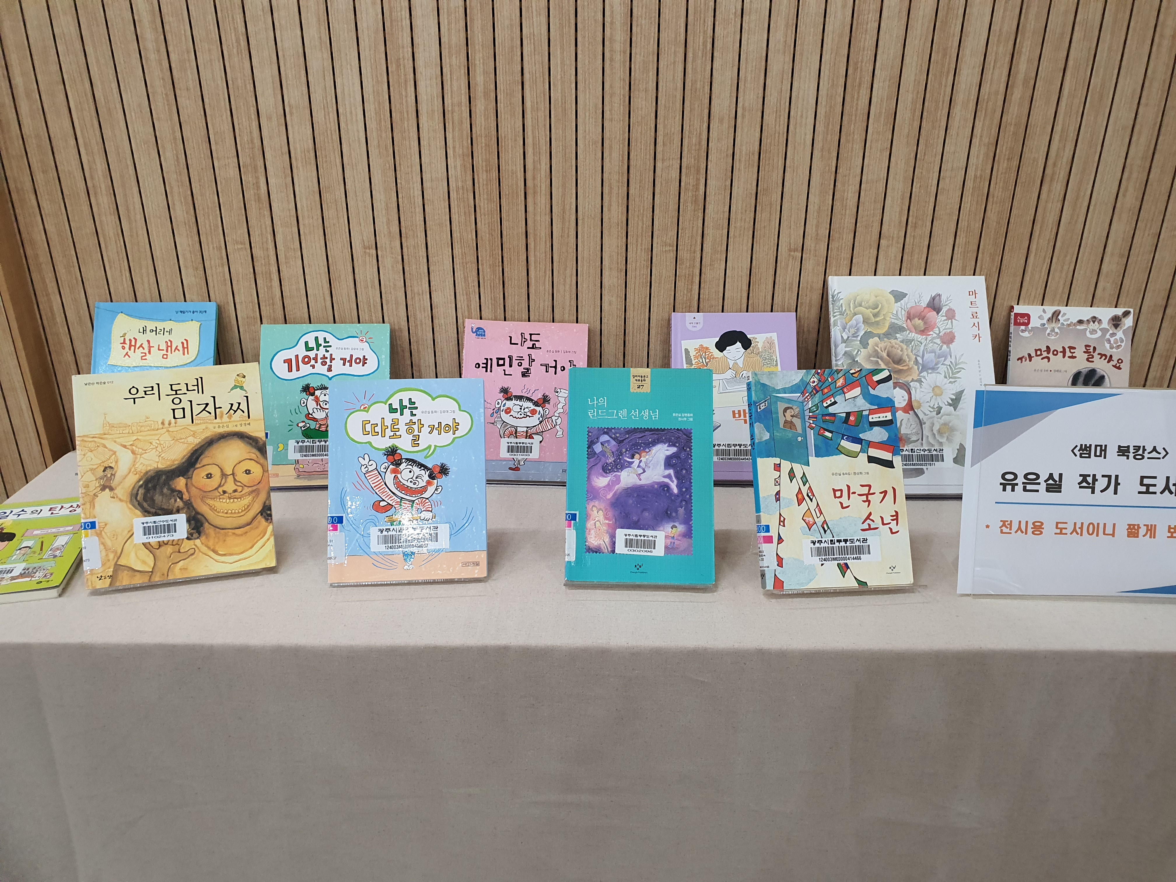 오후 2시부터 강연이 시작되었지만, 나는 일찍 오후 1시 이전에 도착했다. 강연장에 들어서자마자 작가님을 가장 잘 볼 수 있는 자리, 최대한 작가님과 눈을 마주칠 수 있는 사선형 거리를 찾아 앉았다. 강연장 입구와 내부에는 유은실 작가님이 쓴 책들이 전시되어 있었다. 십여 권이 넘는 책을 보며, 이 분이 꽤 유명한 작가라는 사실을 비로소 깨달았다. 유은실 작가님은 청소년과 성인을 위한 동화를 주로 집필하시는 분이었다.