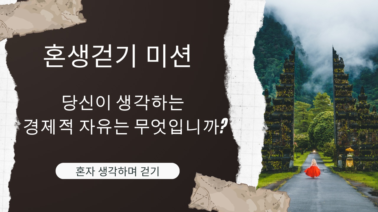 | # 10. 혼생걷기 1기분 추천 미션입니다~ ^^ 내가 생각하는 경제적 자유는 무엇입니까? |