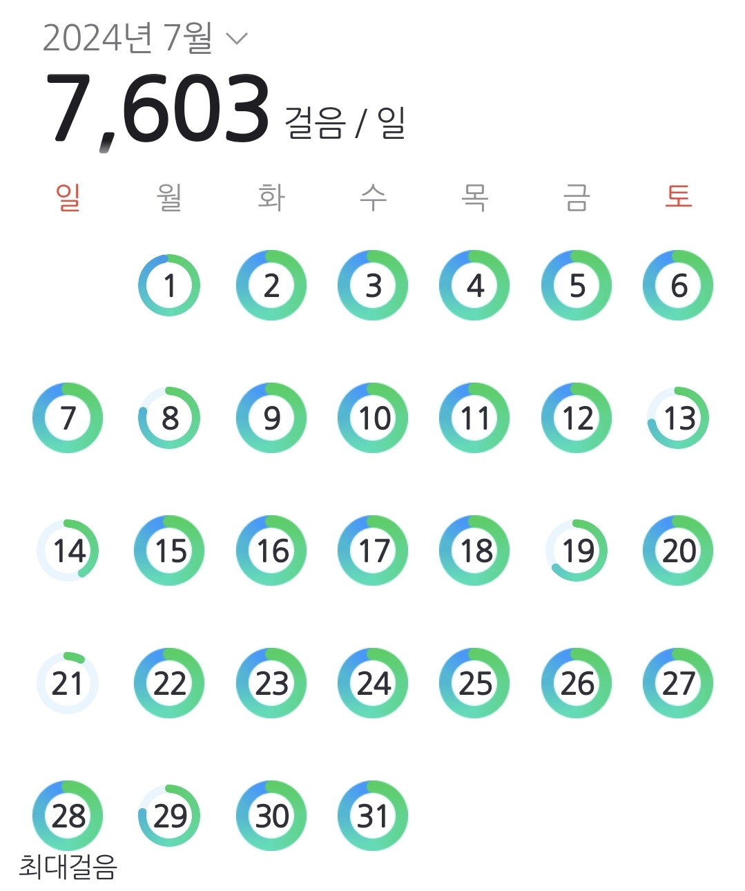 저는 매일 7,500보 이상 걷기를 목표로 잡았습니다.