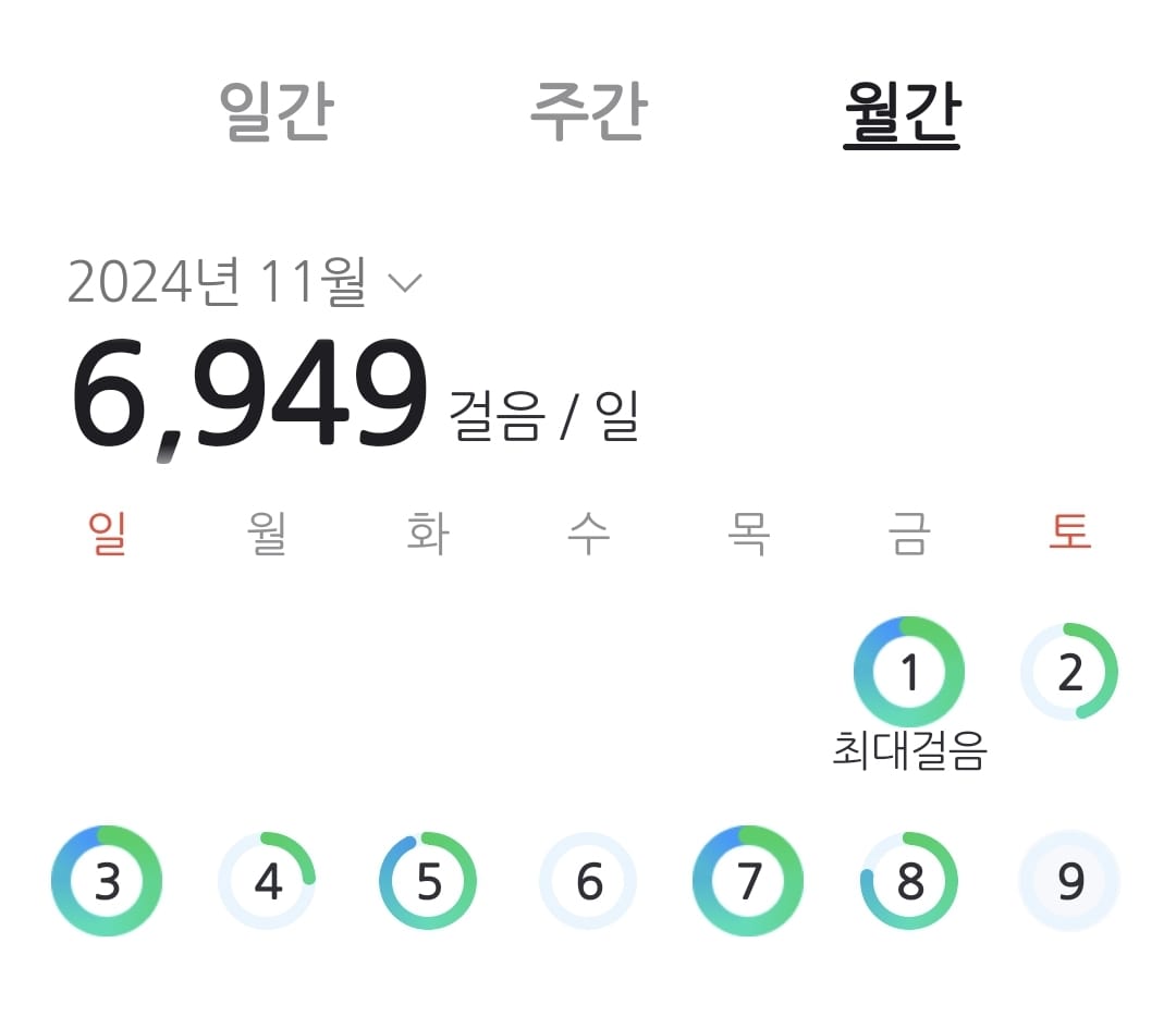 저는 매일 7,000보 이상 걷기를 목표로 잡았습니다.