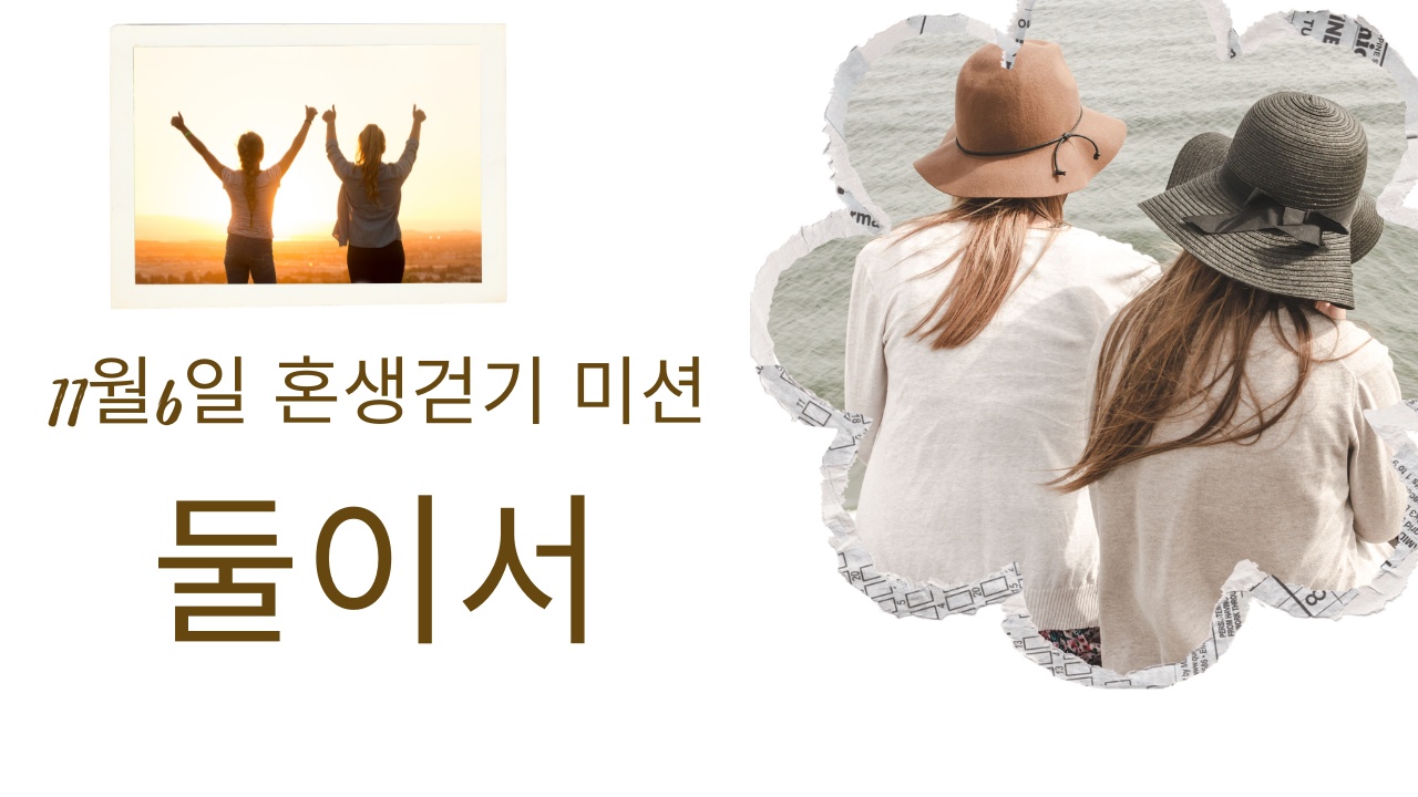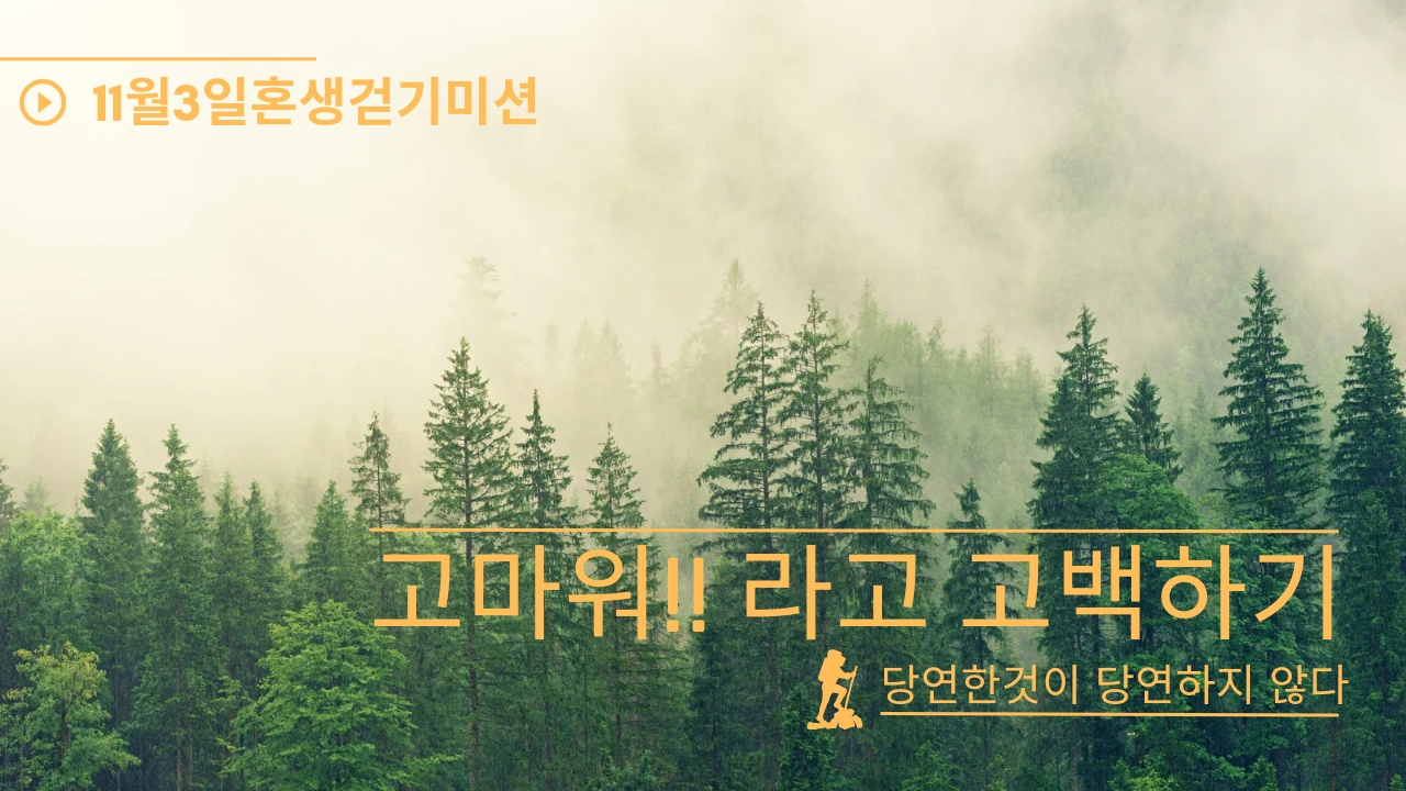 저는 지금 온새미로님의 혼생 걷기 1기, 즉 ' 혼자 생각하며 걷기 1기'에 참여하고 있습니다.