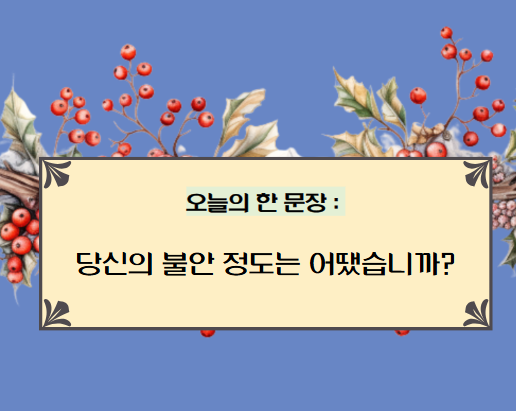 오늘의 나의 불안은 무엇일까요? 불안이라기 보다는 불안과 그리움이 섞인 감정이라고 말하고 싶습니다.