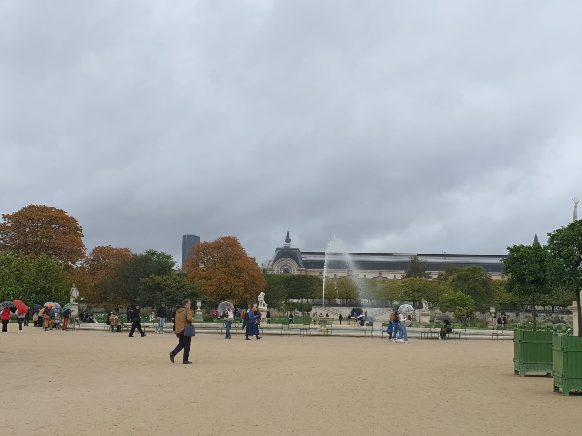 비가 내리는 와중에도 공원에는 많은 사람들이 있었다. 대부분은 관광객이었다. 공원 곳곳에서는 각종 장식품을 파는 상인들과 파리 관광 기념 우산을 팔며 호객하는 장사꾼들이 눈에 띄었다. 비 내리는 공원은 그 자체로도 운치가 있었다. 가을이라 곳곳에 피어 있는 꽃들과 쉼 없이 분수대에서 물을 뿜어내는 모습이 한껏 감성적이었다. 나는 그 풍경 속에서 혼자만의 화음을 흥얼거리며 루브르 박물관 쪽으로 걸어갔다.
