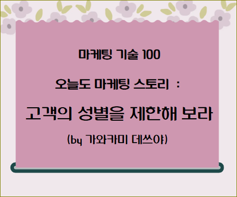 여성만 회원으로 받아서 성공한 기업으로, 미국의 피트니스 클럽 '커브스'가 있다 게일라는 중년 여성들이 피트니스 클럽에 오지 않는 이유을 조사했고, 3가지 이유를 발견했다. 남자, 화장,거울'이었다. 커브스에는 사물함이나 샤워실이 없고, 거울도 없다. 그리고 근력 트레이닝이나 가벼운 유산소 운동, 스트레칭 등 건강을 좋게 만드는 운동을 딱 30분만 하는 피트니스 클럽이다. 이곳에서는 언제나 친절한 코치가 상냥하게 말을 걸고 도와준다.
