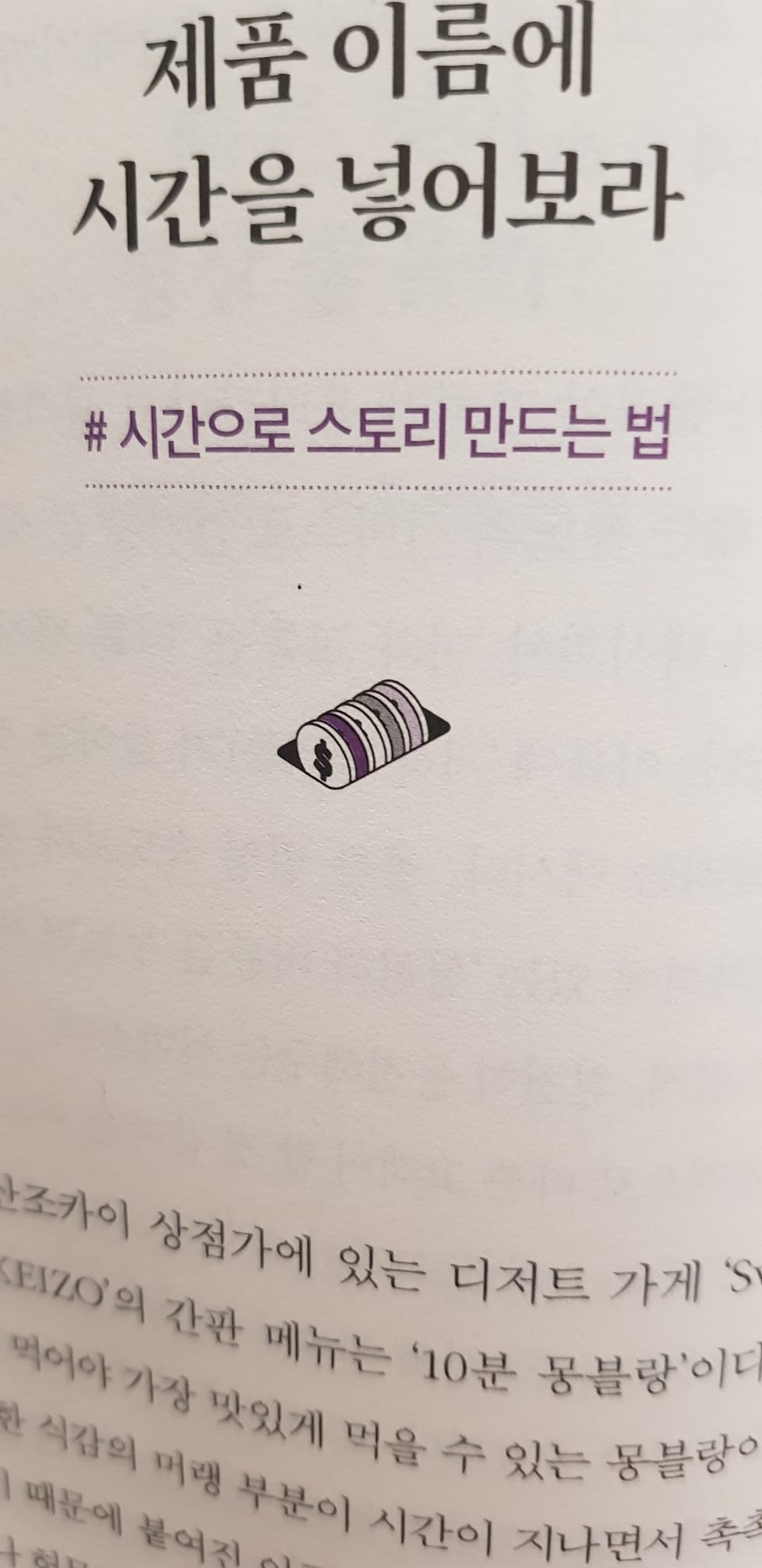 스토리 기술 상품명과 시간을 합쳐 새로운 상품명을 만들면 스토리가 생긴다. 제품명이 사람의 감정을 건드릴 수도 있다.