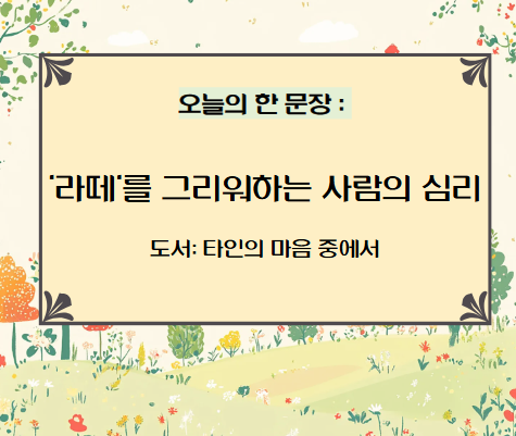 저는 사람들과 부딫히는 것을 싫어해서 가급적 피하려고 하는 타입입니다. 그러나 속으로는 엄청 판단하고 경계하고 마음의 선을 긋습니다. 겉으로는 이해하는 척, 포용하는 척하지만 마음에서는 경게를 하고 두번째에는 가급적 가까이 접근하지 않으려 합니다. 그리고는 속으로 늘 말합니다. 라떼는 저렇게 하지 않았는데, 라떼는 저렇게 하면 버릇없다고 핀잔받았는데, 라테는 저런식으로 어른한테 고객 빳빳이 들고 말 대꾸하지 않았는데등. 라떼를 들먹이면서 요즘 애들은 정말 이해가 안간다고 판단하고 극도로 싫어합니다. 그리고 라떼를 들먹입니다. 지금은 여러사람과 함께하는 직장에 다니지 않지만, 그래서 사람들과 부딪히는 일은 없지만, 세대를 아우르는 직장에서 일할 때, 이런 판단과 정죄하는 마음, 그리고 라테를 들먹이면서 과거 이야기를 많이 하면서 젊은 세대들과 어울리는 것이 많이 힘들었습니다. 추억은 추억으로 끝내야 함을 배웁니다. 또한 지금 세대의 고민을 이해할 수 있게 되었습니다. 저와 같은 기성세대와 현재 2030세대는 분명히 가치관이나 생각하는 시각이 다를 것입니다. 현 세대들이 자라온 환경과 배움이 다르기에 분명 생각하는 관점이나 판단하는 기준이 다를텐데 내 세대의 가치관에, 내 세대의 배움의 틀에 끼어 맞추려고 하니, 내 안아서 삐그덕 소리를 내며 마음의 빗장을 걸어잠궈버렸던 것이 문제였음을 깨닫고 반성하는 마음입니다. 현 세대를 이해하려는 마음을 갖도록 노력해야겠습니다. 서로 존중감을 가질 때, 서로 배우고 가르칠 때 세대간의 시너지 효과를 더 많이 낼 수 있다는 조언을 마음에 새기고, 젊은 세대를 바라보는 저의 마음과 시각을 바꾸려고 이제부터라도 노력해야 겠습니다.