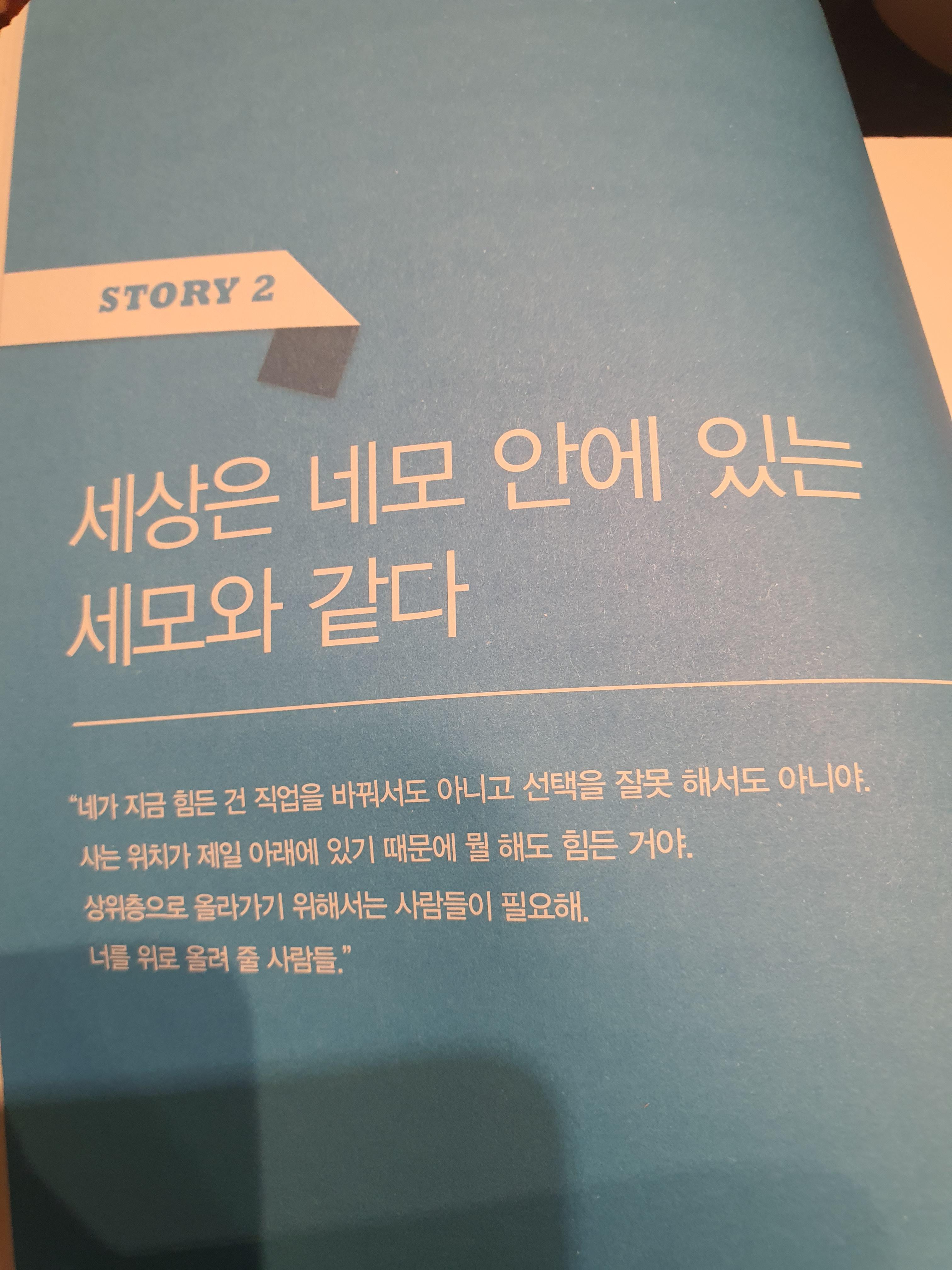 네가 지금 힌든 건 직업을 바꿔서도 아니고 선택을 잘못 해서도 아니다. 사느 위치가 제일 아래에 있기 때문에 뭘 해도 힘든 거다. 상위층으로 올라가기 위해서는 사람들이 필요하다. 너를 위로 올려 줄 사람들이 필요하다.